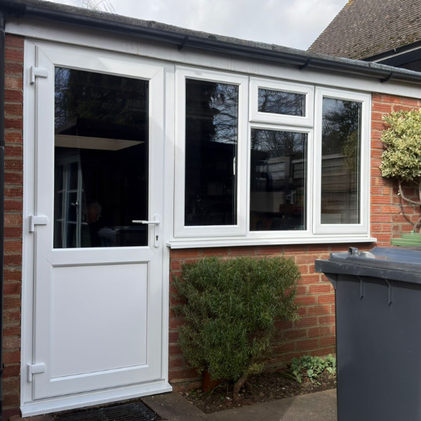 This installation in Stratford-upon-Avon brings a clean, practical update to the rear of the home with a new uPVC back door and matching double glazed windows.