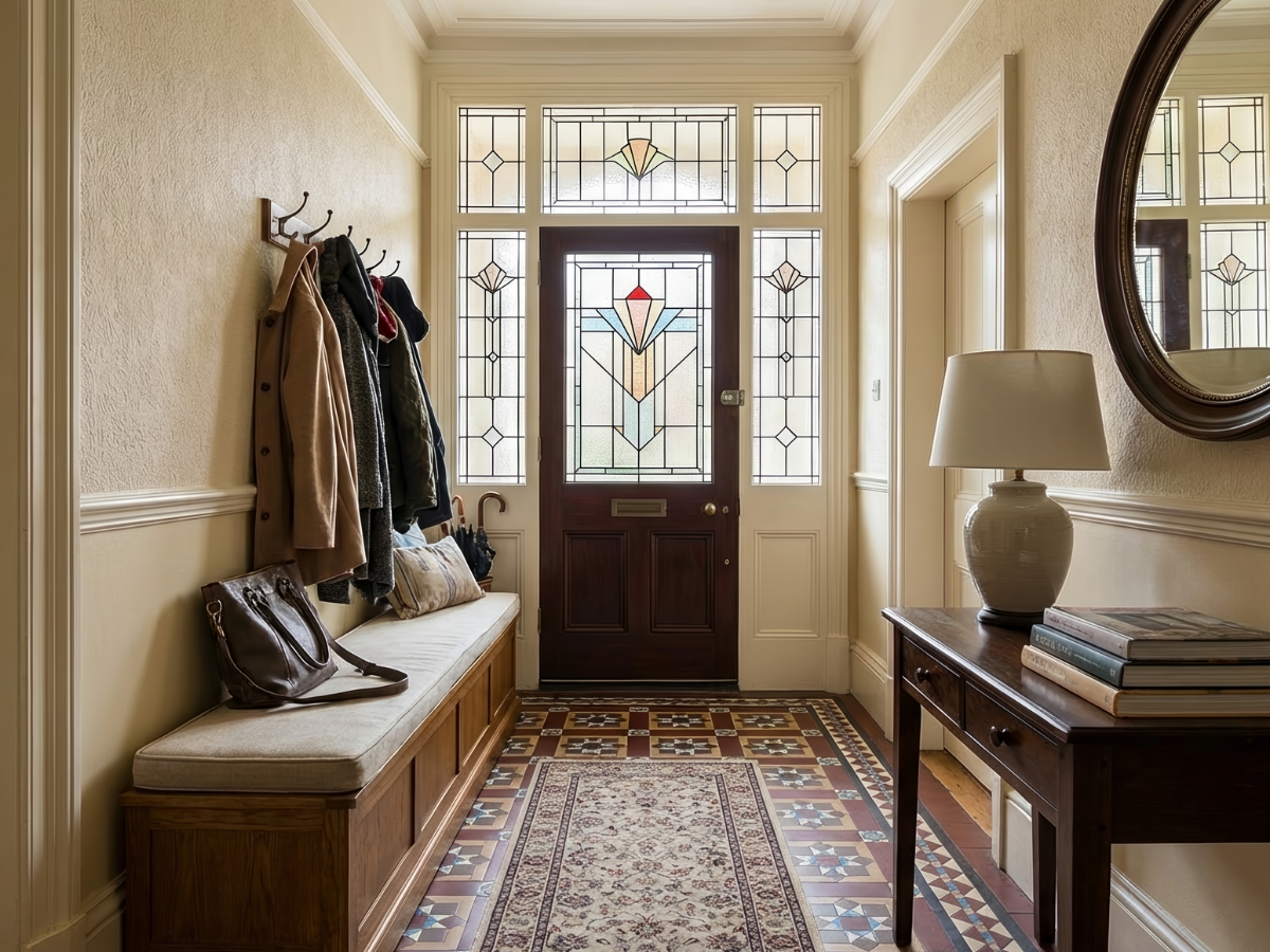 Front doors with stained glass panels offer a simple way to add character while still serving a practical purpose. They create an immediate impression from the outside and bring coloured light into the entrance hall, making what is often a darker space feel brighter and more welcoming.